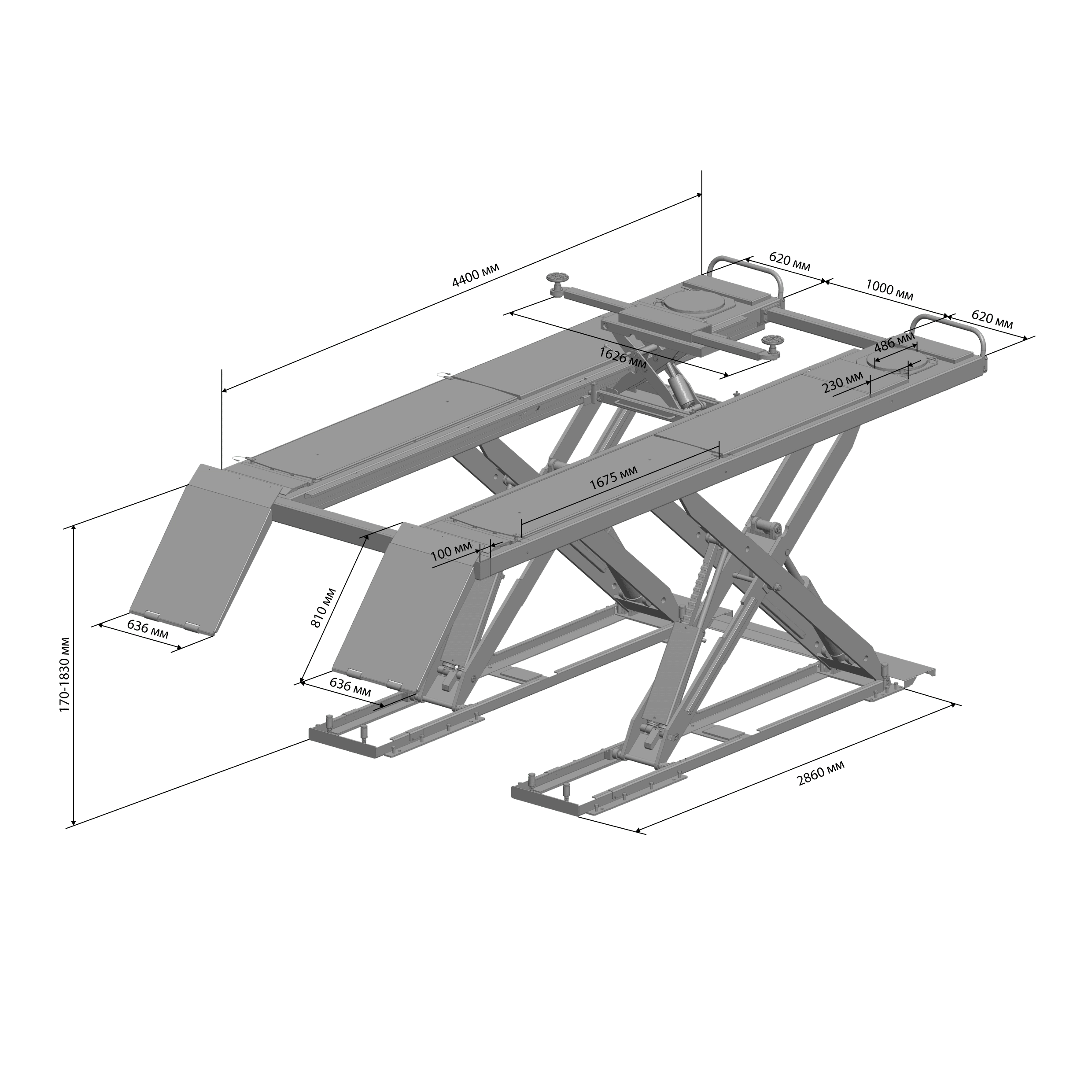• Электрогидравлический ножничный подъемник для сход-развала с траверсой