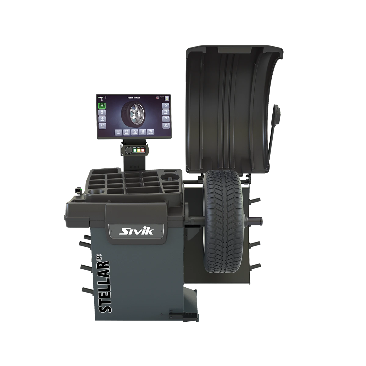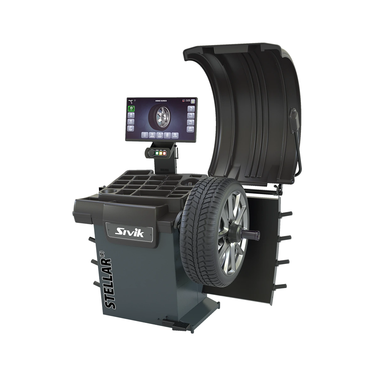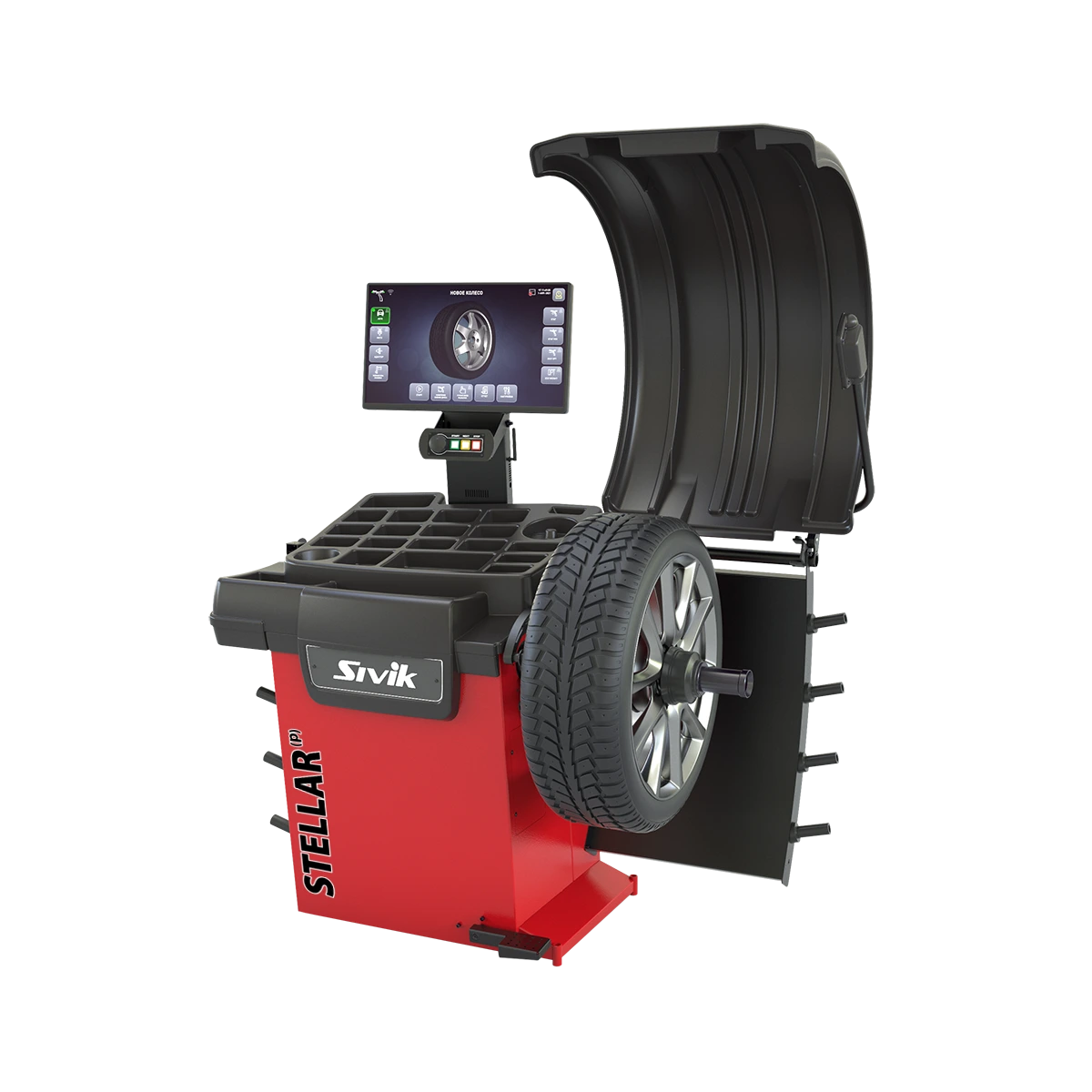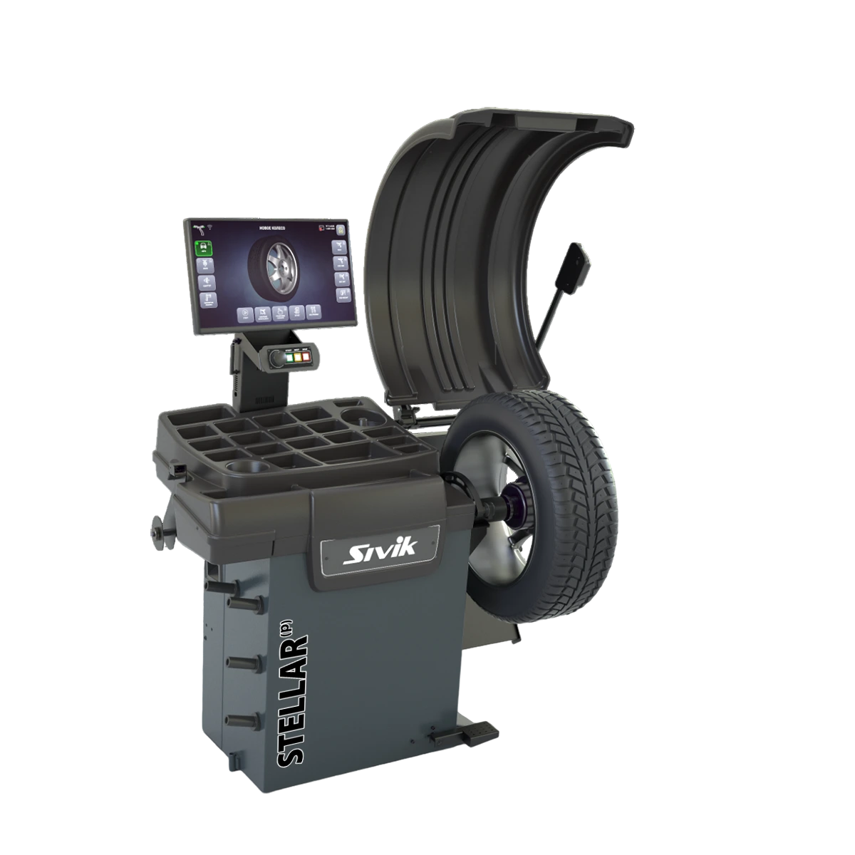 • Пневматический вал станка STELLAR (p) зажимает колесо очень быстро, экономя время при балансировке каждого колеса.