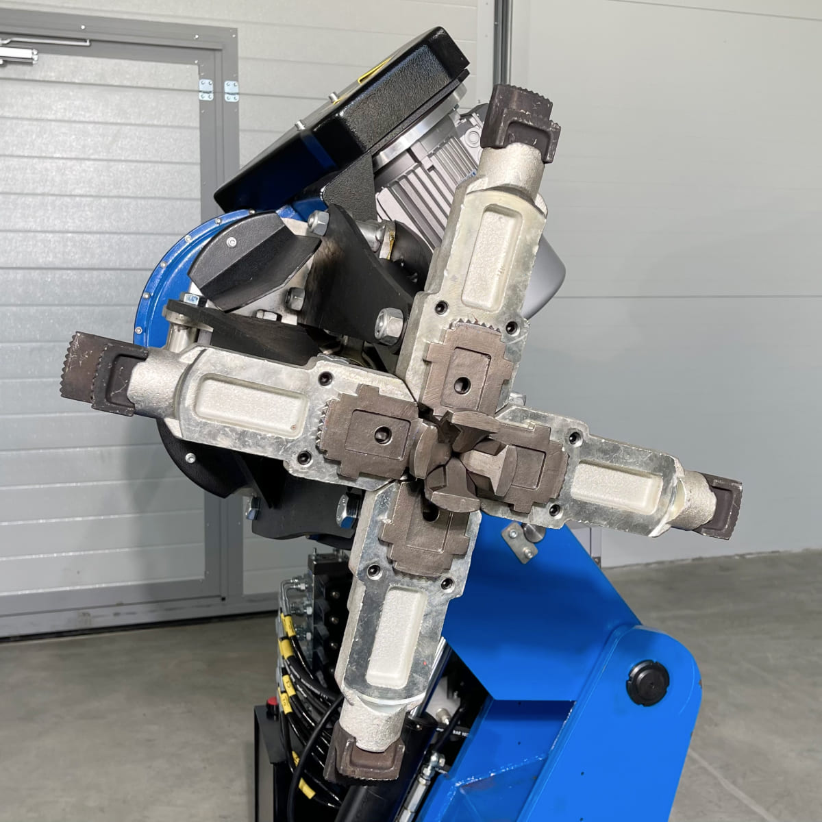 • Универсальный 4-х кулачковый зажим надежно фиксирует диск, не допуская его проворота во время демонтажа и монтажа шины