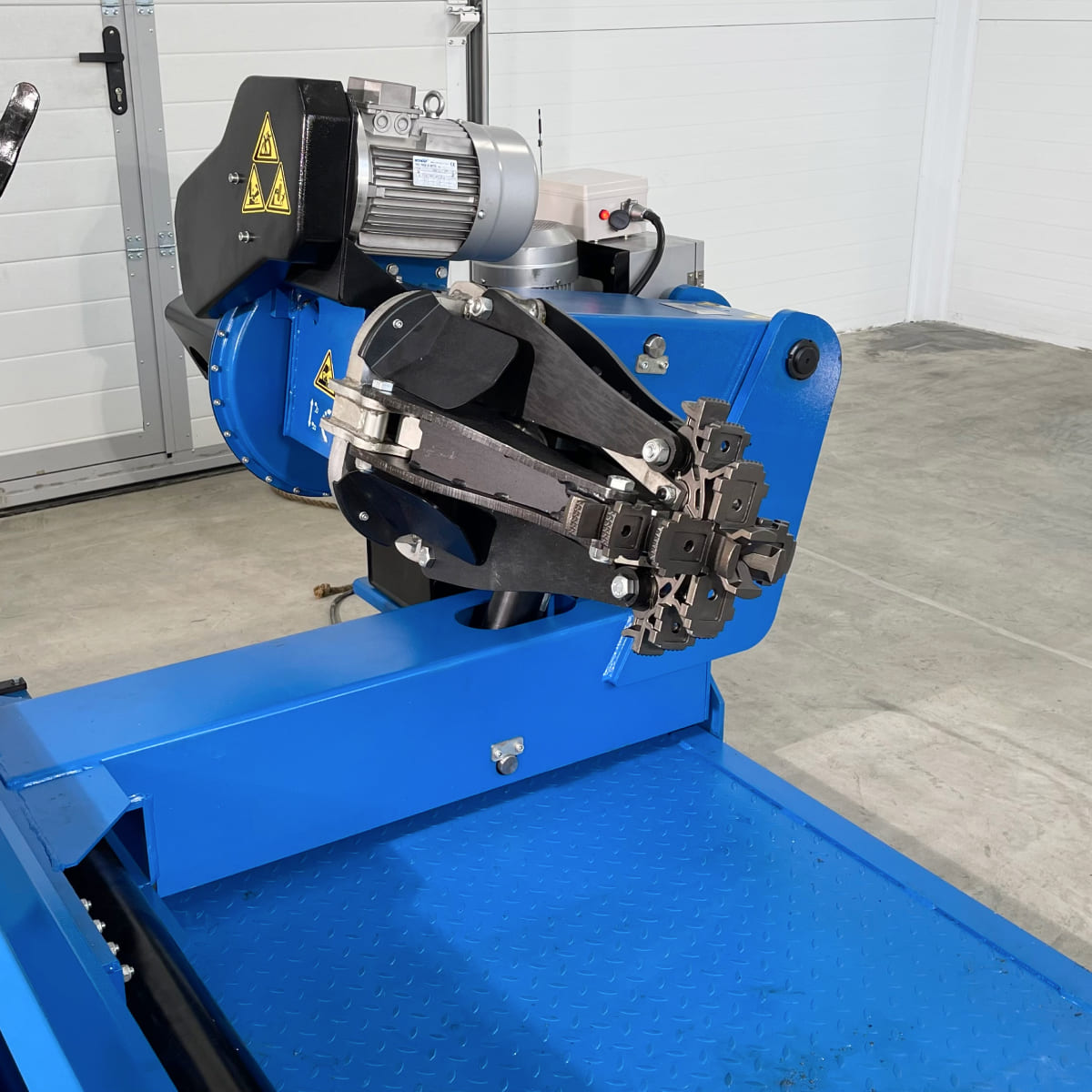 •    Универсальный электрогидравлический шиномонтажный стенд для монтажа и демонтажа крупногабаритных шин (например, для Белаза с грузоподъемностью 55 т), а также шин грузовых автомобилей, карьерной и строительной техники