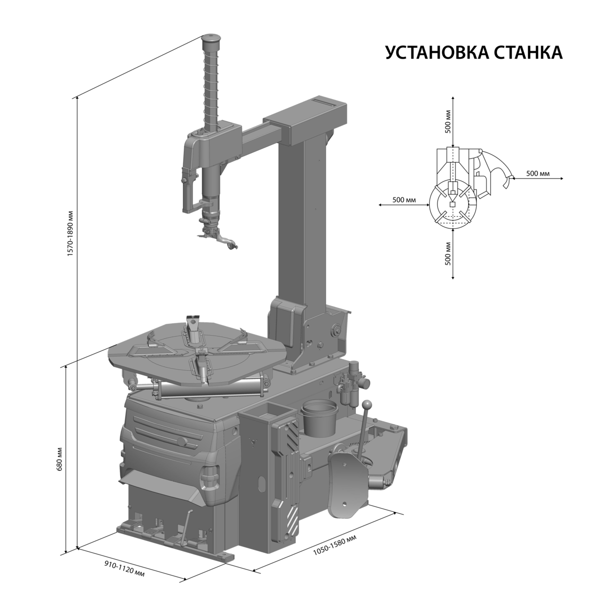 - Конструкция станка дает возможность работать с покрышками диаметром до 1 метра и шириной до 330 мм