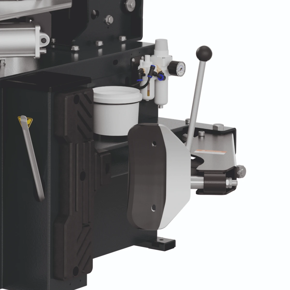- Диаметр цилиндра 200 мм позволяет развивать усилие свыше 3 т на лопатке отжима борта, что обеспечивает уверенный отжим прикипевших шин и шин с жесткой боковиной (включая RUNFLAT).