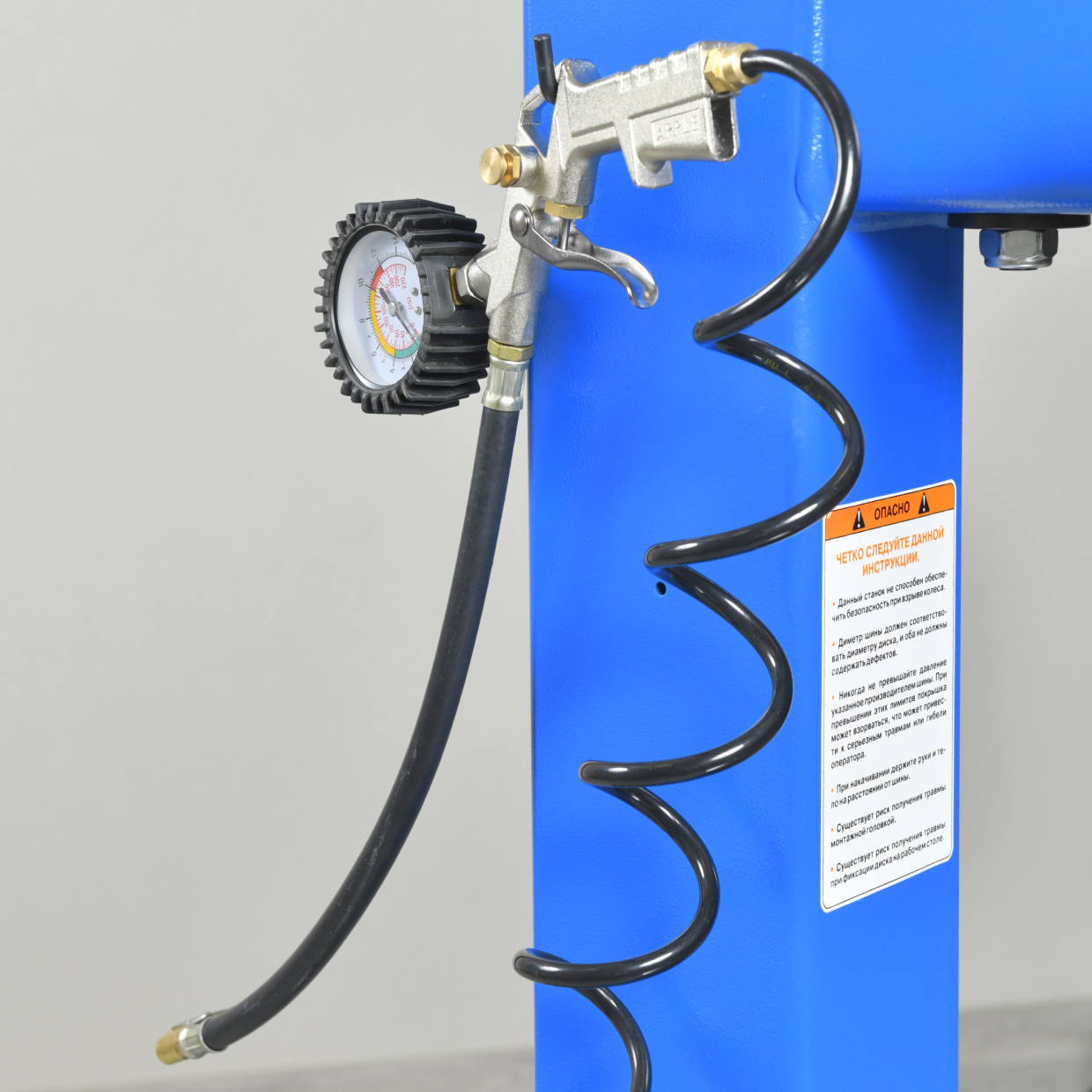 • Станок оснащен ПИСТОЛЕТОМ ДЛЯ НАКАЧКИ КОЛЕС с манометром