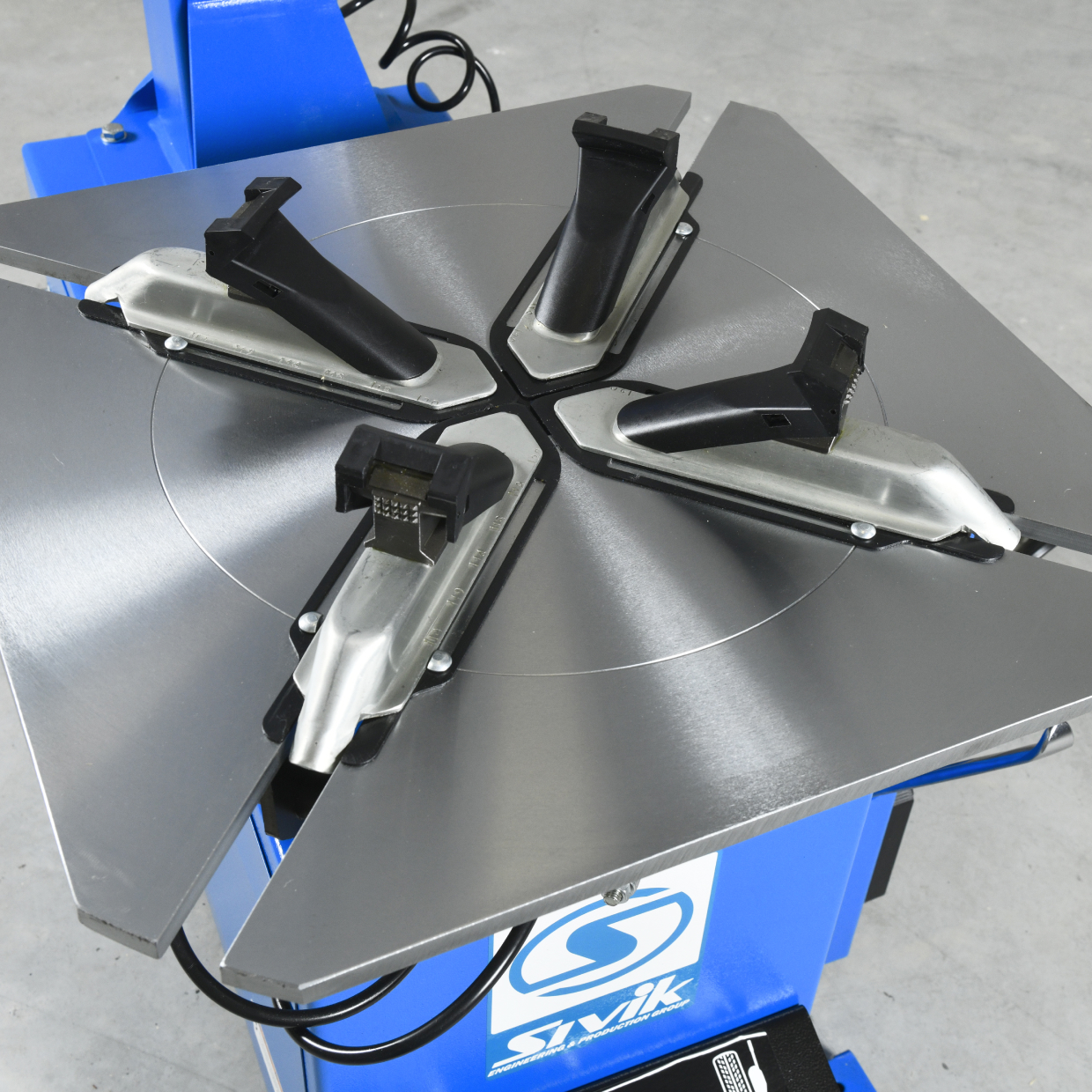 • С декабря 2022 рабочий стол КС-301А увеличен и позволяет надежно зафиксировать колесные диски диаметром до 24 дюймов зажимом изнутри и до 22 при зажиме снаружи
